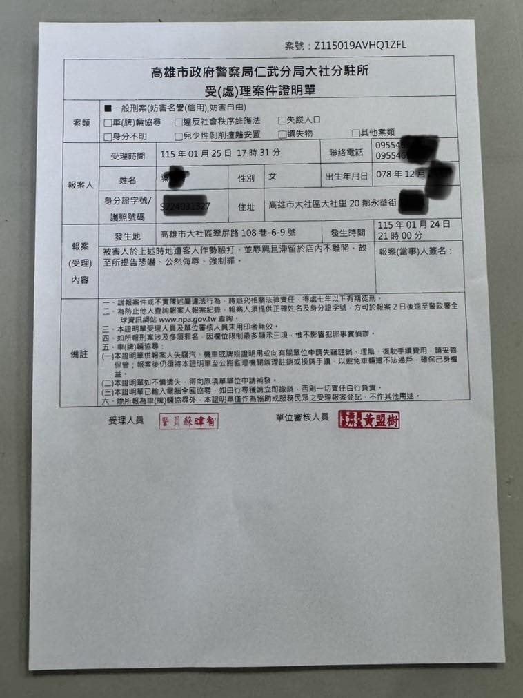 影/花錢是老大?奧客閉店不離開跑到櫃檯大小聲 高雄店家怒PO監視器報案