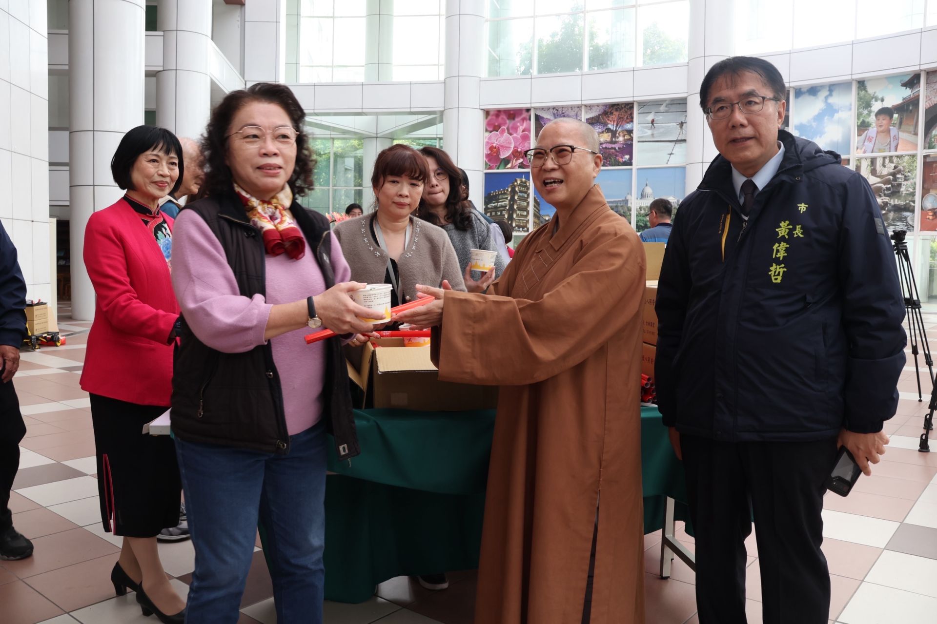 滿舟法師表示今天是十萬碗粥圓滿的最後一站,17天27個據點,今天特別遞送600碗暖粥,傳頌佛陀慈悲與智慧的溫馨祝福,祝福市府團隊一切順利、平安,市民平安吉祥,新的一年和諧共生,馬到成功。