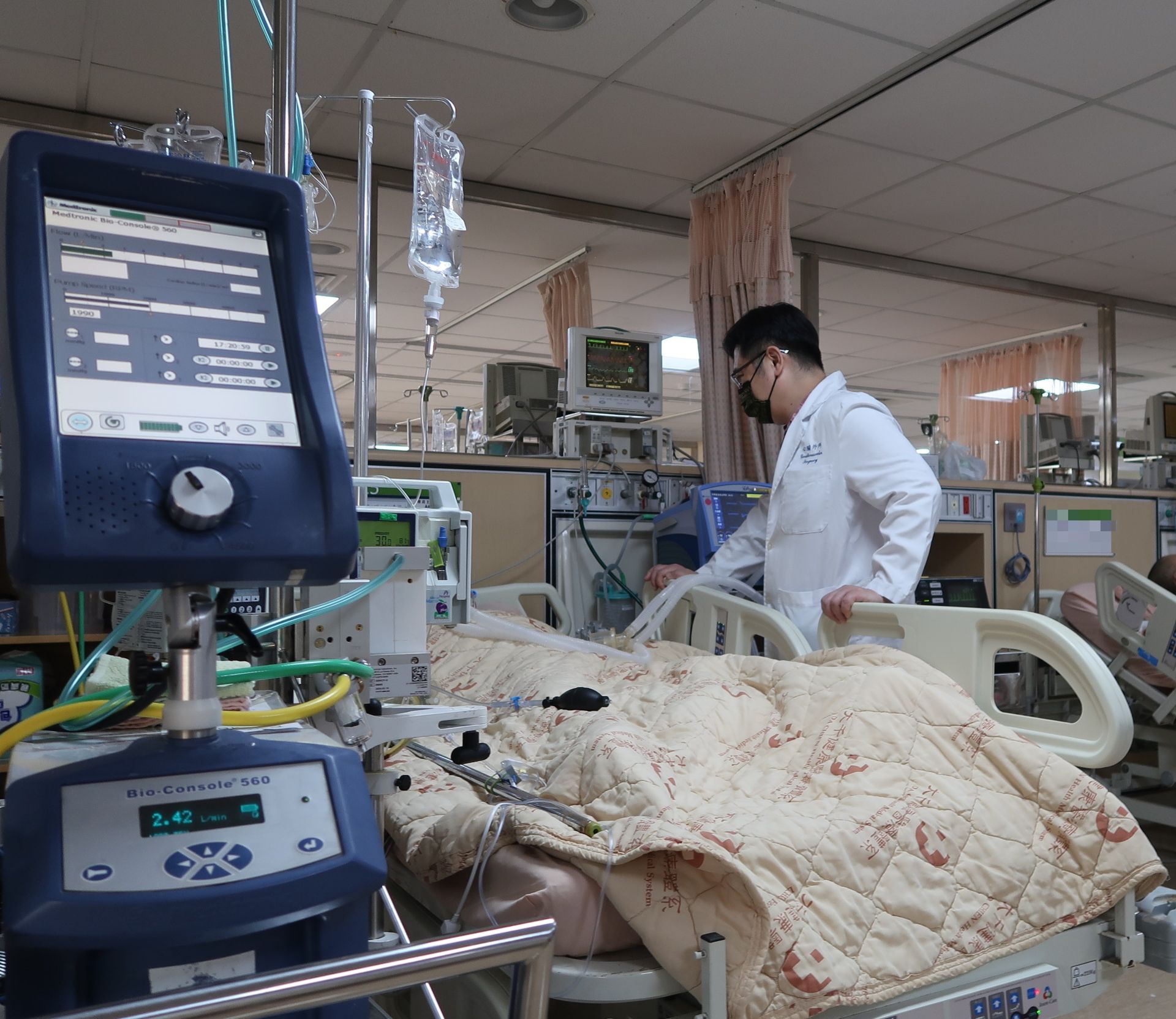 病人裝設葉克膜後,緊急接受心導管治療,並在加護病房團隊照護下,順利恢復意識(照片:大千醫院供)